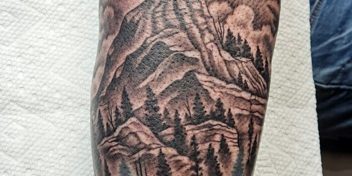 Progress on a lower leg wrap from Jean. Started as an apprentice back in Jan 2022 with a dragon fly on the shin. Been chipping away here and there.