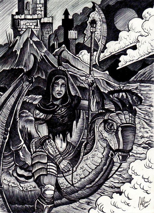 A pen and ink fantasy piece by John, prints available upon request.